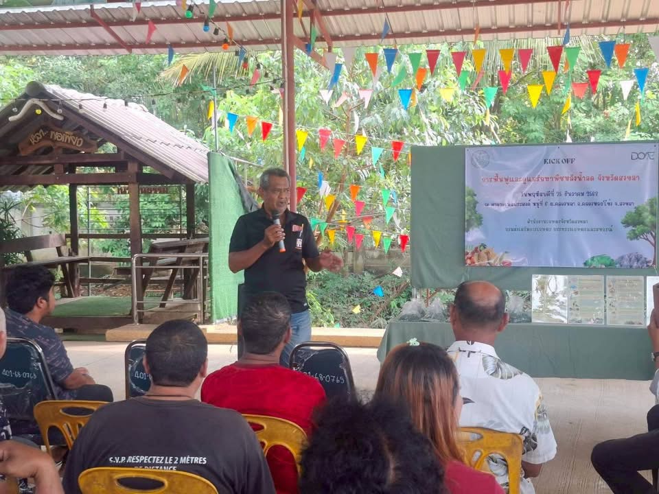 จากนั้น ได้ร่วมพบปะและให้กำลังใจเกษตรกรที่เข้าร่วมกิจกรรม Kick off การฟื้นฟูและรักษาพืชหลังน้ำลด จังหวัดสงขลา ประจำปีงบประมาณ 2569 โดยมีทีมวิทยากรจากสำนักงานเกษตรจังหวัดสงขลา ร่วมให้คำแนะนำด้านการจัดการสวนไม้ผล ปาล์มน้ำมัน และพืชผักหลังน้ำลด ตลอดจนสนับสนุนชีวภัณฑ์เชื้อราไตรโคเดอร์มา แก่สมาชิกกลุ่มแปลงใหญ่ทุเรียนอำเภอคลองหอยโข่ง หมอพืชชุมชนอำเภอคลองหอยโข่ง และเกษตรกรทั่วไป เพื่อนำไปใช้ในการฟื้นฟูและดูแลแปลงเพาะปลูก