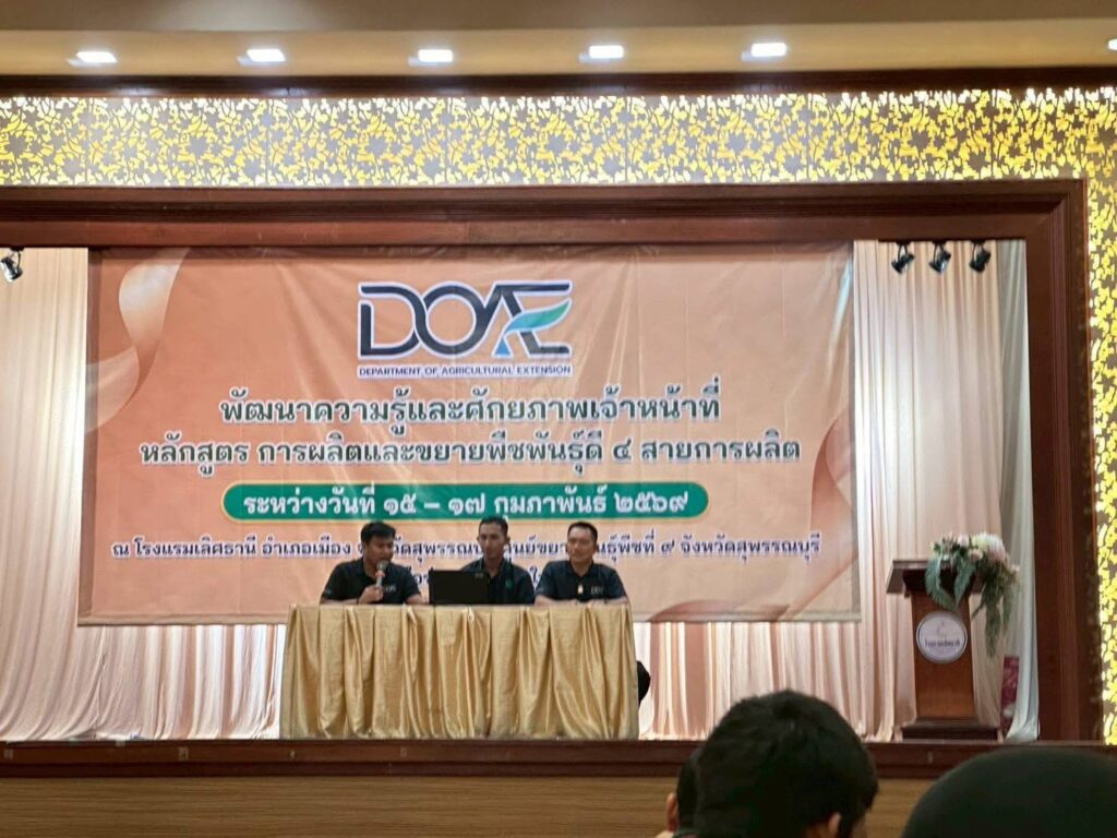 วันที่ 15 – 17 กุมภาพันธ์ 2569 นายประถม มุสิกรักษ์ เกษตรจังหวัดสงขลา มอบหมายให้นาง ลภัสกร มะขามป้อม นักวิชาการส่งเสริมการเกษตรปฏิบัติการ กลุ่มส่งเสริมและพัฒนาการผลิต สำนักงานเกษตรจังหวัดสงขลา เข้าร่วมการอบรมพัฒนาความรู้และศักยภาพเจ้าหน้าที่ หลักสูตร การผลิตและขยายพืชพันธุ์ดี 4 สายการผลิต เพื่อเสริมสร้างให้เครือข่ายเจ้าหน้าที่ในทุกระดับมีความรู้ ความเข้าใจ และแนวทางปฏิบัติอย่างถูกต้องตามหลักวิชาการ เกี่ยวกับการผลิตและขยายพันธุ์พืชพันธุ์ดี และสามารถนำองค์ความรู้ที่ได้รับไปประยุกต์ใช้ในการปฏิบัติงานด้านการส่งเสริมการผลิตและขยายพืชพันธุ์ดีในพื้นที่ได้อย่างมีประสิทธิภาพ โดยมี นายวีรศักดิ์ บุญเชิญ รองอธิบดีกรมส่งเสริมการเกษตร เป็นประธานในพิธีเปิดกิจกรรมการอบรมดังกล่าว พร้อมทั้งมอบแนวทางในการขับเคลื่อนงานโครงการฯ ให้กับผู้เข้าร่วมอบรม ณ โรงแรมเลิศธานี อำเภอเมือง จังหวัดสุพรรณบุรี ทั้งนี้ ได้มีการลงพื้นที่เพื่อฝึกปฏิบัติการผลิตและขยายพืชพันธุ์ดี ได้แก่ การผลิตเมล็ดพันธุ์พืช การเพาะเลี้ยงเนื้อเยื่อ การขยายพันธุ์พืชด้วยกิ่งพันธุ์ และการขยายพันธุ์พืชด้วยท่อนพันธุ์ ณ ศูนย์ขยายพันธุ์พืชที่ 9 จังหวัดสุพรรณบุรี และแปลงเครือข่ายเกษตรกรในพื้นที่